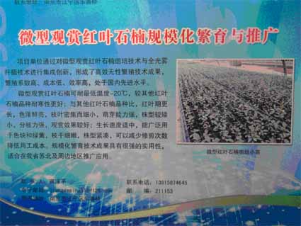 微型观赏红叶石楠为常绿灌木或小乔木,是红叶石楠中一个矮生、小叶的优良变异品种。它具备的优势:1)耐寒性好,耐最低温度-20℃,能在北京以南地区正常生长,较其它红叶石楠品种耐寒性更好;2)在春季直到5月中下旬,嫩枝、新叶均呈鲜红亮丽色,9月下旬秋叶萌发再次呈鲜红色,与其他红叶石楠品种比,红叶期更长,色泽鲜亮,枝叶密集而细小,萌芽能力强,其株型较矮小,分枝力强,观赏效果较好;3)生长速度适中,但较其他品种慢,能广泛用于色块和绿蓠,枝干细嫩,株型紧凑,可以减少修剪次数降低用工成本。为了加快新品种繁育推广,具体工作进展如下: