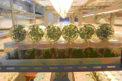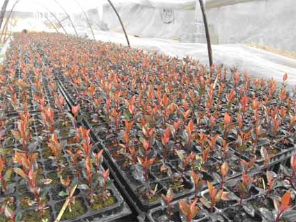规模化繁育技术研发:项目在前期引进筛选微型观赏红叶石楠新品种的基础上,通过对外植体选择,消毒灭菌初代培养建立无菌系,并进行了初代培养的芽苗进行基本培养和植物生长剂种类与组合筛选,筛选组培增殖和壮苗培养基,在壮苗培养后开展试管内生根技术研究进而进行室外移栽管理技术研发,对整个培养过程中出现的褐变和玻璃苗现象进行调控形成组培繁殖工艺流程;在研发成功组培繁殖工艺流程的基础上,进一步简化试管苗移栽技术,对于推广应用时,开展试管苗异地移栽技术服务,取得较好效果,移栽成活率高达95%以上,受到推广示范点育苗户的欢迎和赞誉;同时今年夏季开展了微型观赏红叶石楠嫩枝的全光雾扦插技术研究,通过基质、生根剂、插条等影响生根因子的筛选调控,形成一套扦插繁殖技术流程,已经撰写完成科研论文1篇;组培与扦插技术集成,现已繁育试管无菌苗30万株,扦插苗5万株,为微型观赏红叶石楠进一步规模化繁育打下了坚实的基础。